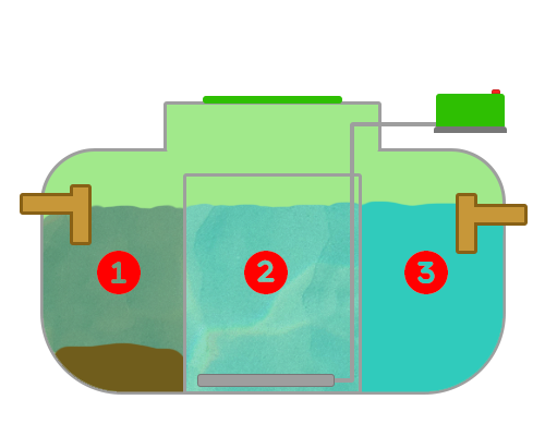 Just the same as a cesspit or septic tank, it all starts with pipework from your property transferring all the sewage and wastewater into the treatment plant, via its inlet, into the first chamber . This chamber serves to split the liquid from the fats, grease, oils and solids. This is often referred to as a primary, settlement or separation chamber.